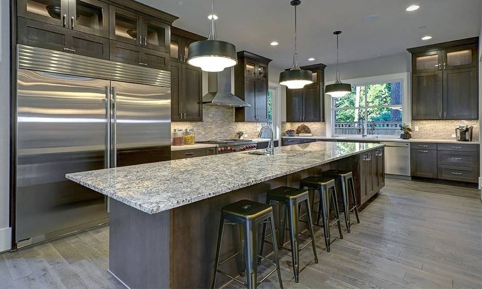 This is a concept that involves the use of multiple chairs to accommodate a lot of people at once. A granite stone dining table top with chairs on one side and a relaxed sitting area on the other side makes it a perfect asset for your home. A dining experience that is relaxing while spending time bonding with friends and family is what you get out of this. The right type of lights hovering over the space is the perfect addition.